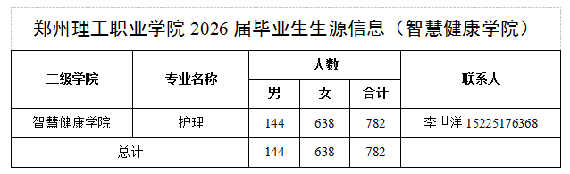 附件:郑州理工职业学院2026届毕业生生源信息(智慧健康学院)